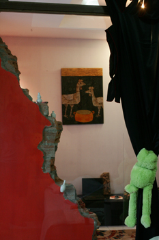 Nếu chỉ như thế thôi, có thể ngôi nhà chưa bị gọi là …nhà phù thủy. Ông chủ nhà là người làm trong nghề nhiếp ảnh, vốn khoái những gam màu nóng nên không ngần ngại chọn màu đỏ để sơn lại một phần của bức tường. Hơn thế nữa, màn che ở cửa sổ lại thuần một màu đen; vách ngăn cũng là những góc cột đen.Một số vật dụng không thích trao chuốt phẳng phiu mà góc cạnh,gồ ghề. Tất cả màu sắc, vật dụng như hòa hợp cùng nhau, lặng im,tóat lên một ngôn ngữ cá tính: mạnh mẽ, gai góc nhưng cũng hiền lành mộc mạc.